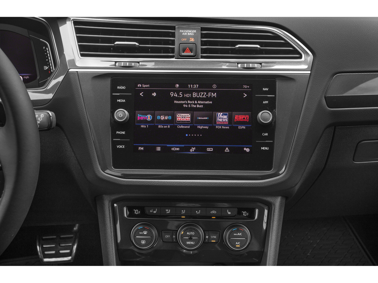 - Radio: MIB3 Discover Media AM/FM/HD -inc: 8" touchscreen navigation, WMA/MP3/FLAC player w/USB-C, voice control, Fender premium audio system w/subwoofer, wireless inductive charger (for compatible devices), App-Connect smartphone integration (w/Apple CarPlay, Android Auto and MirrorLink) via USB, Wireless App-Connect smartphone integration (for compatible devices w/multi-phone pairing capability), capability for in-vehicle 4G LTE enabled Wi-Fi (cellular data plan required; includes limited trial), capability for VW Car-Net services (capabilities for certain services vary; requires enrollment or subscription), Bluetooth connectivity (for compatible devices) and SiriusXM w/360L (w/3-month All Access trial; 360L services require acceptance of Car-Net terms)