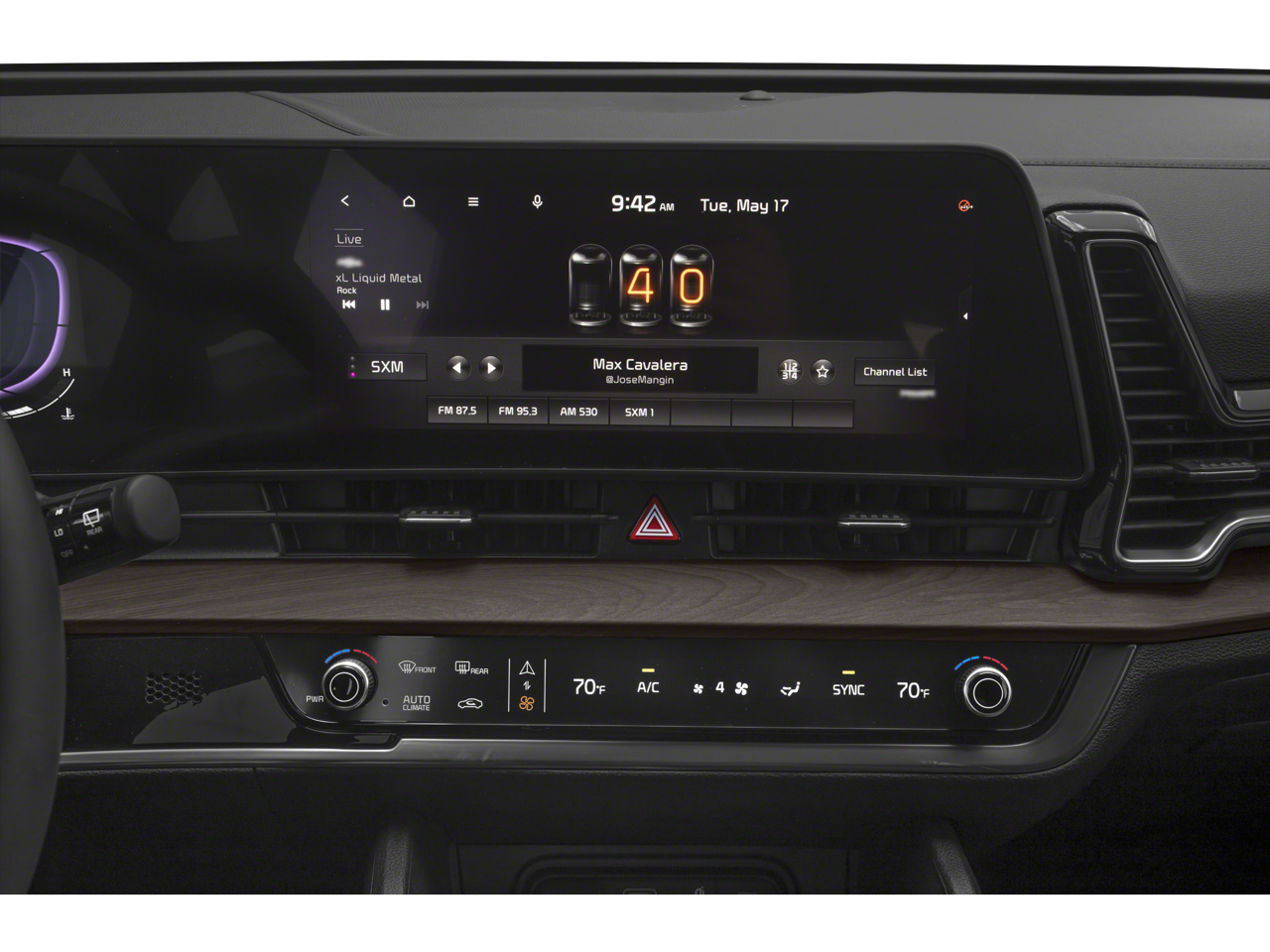 - Radio: AM/FM/HD Audio System -inc: 12.3" touchscreen w/navigation, 6 speakers, wired Apple Carplay and Android Auto, UVO telematics, voice recognition, SiriusXM, steering wheel mounted audio controls and Bluetooth phone and streaming audio