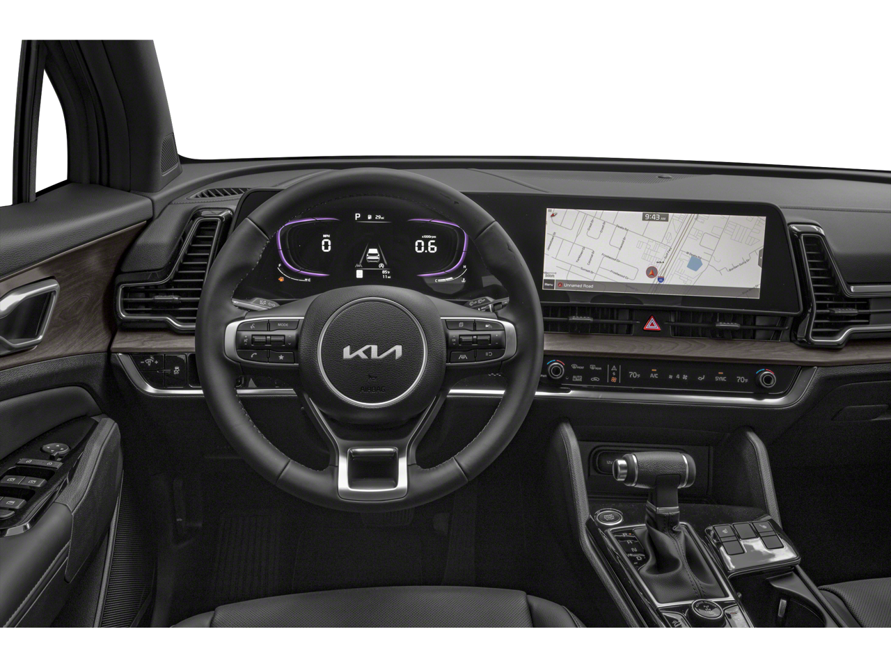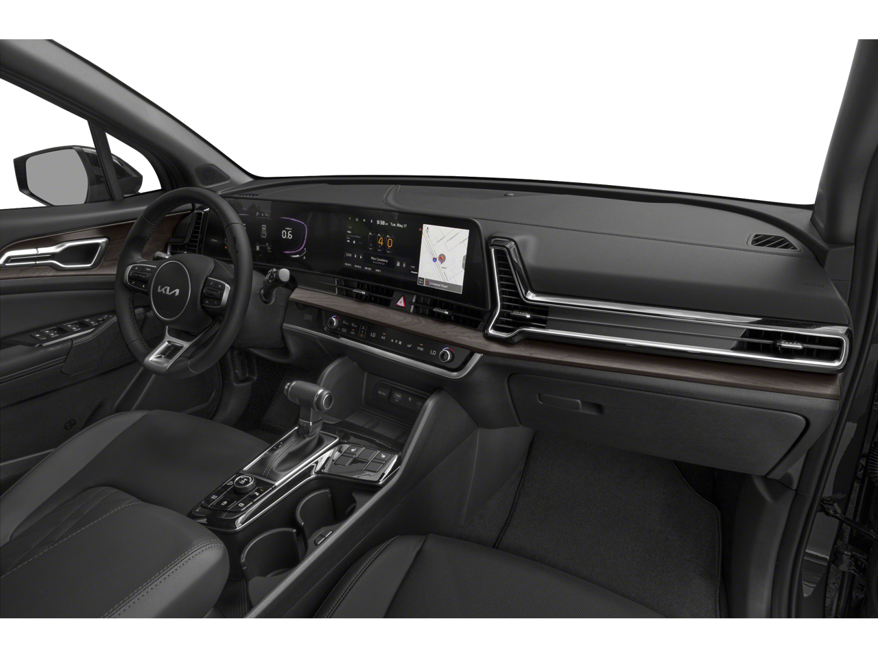 - Refined Style: The Sportage's Gloss Black Alloy Wheels and Spoiler add a touch of modern flair, while the Leather Shift Knob and Leather Steering Wheel exude a premium feel.