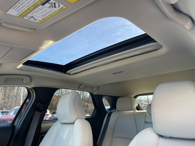 Step inside and you'll be greeted by a wealth of premium amenities, including the MAZDA CONNECT Infotainment System with Navigation, 8-speaker audio, dual-zone automatic climate control, and a power-operated moonroof. The leather-wrapped steering wheel and shift knob provide a refined touch, while the heated front seats and Heads-Up Display ensure your comfort and convenience.
